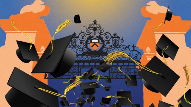 In this card, Jasmine and Nick exchange gifts by FitzRandolph Gates. Chosen to be the Princeton University Office of Communications holiday card in 2023.